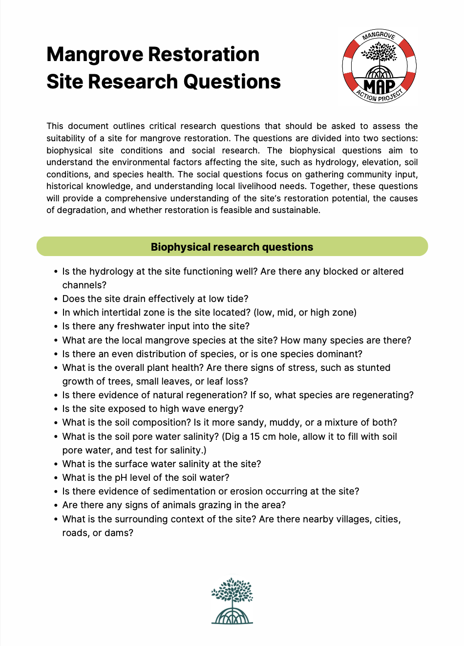 Mangrove Restoration Site Research Questions